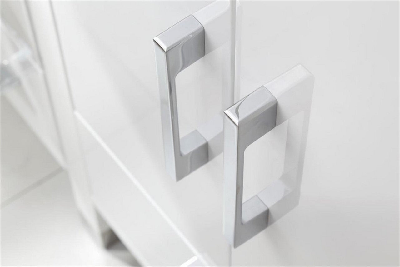 The Anziano Bathroom Vanity provides a contemporary design perfect for any bathroom remodel. The ample storage in this free-standing vanity includes four doors and fourteen fully functional drawers lining the cabinet, with chrome hardware accents. The pure white Quartz countertop it is made using nano technology, that makes it virtually impenetrable and maintenance free.