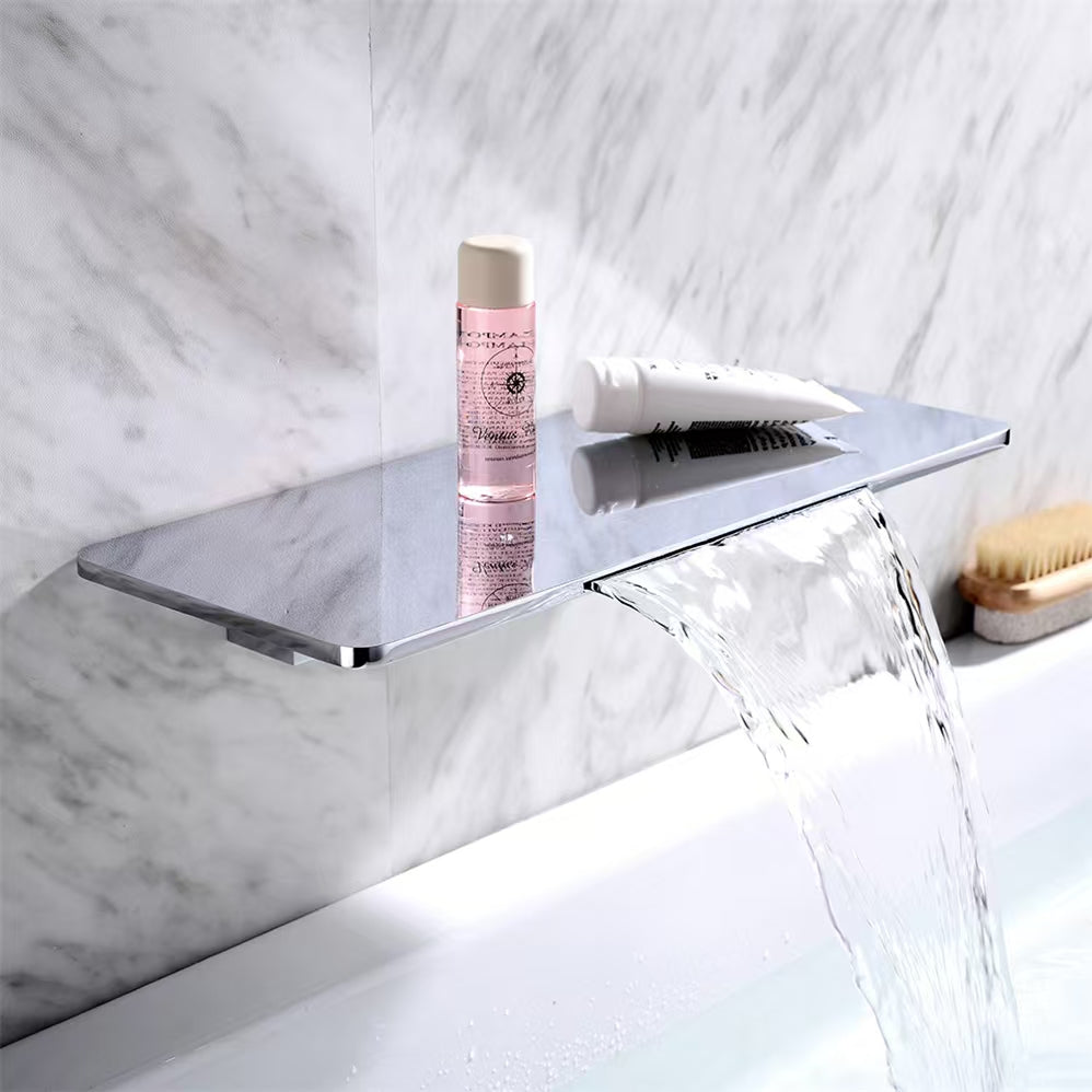 Aqua Flusso by KubeBath Wall Mount Widespread Waterfall Faucet Chrome