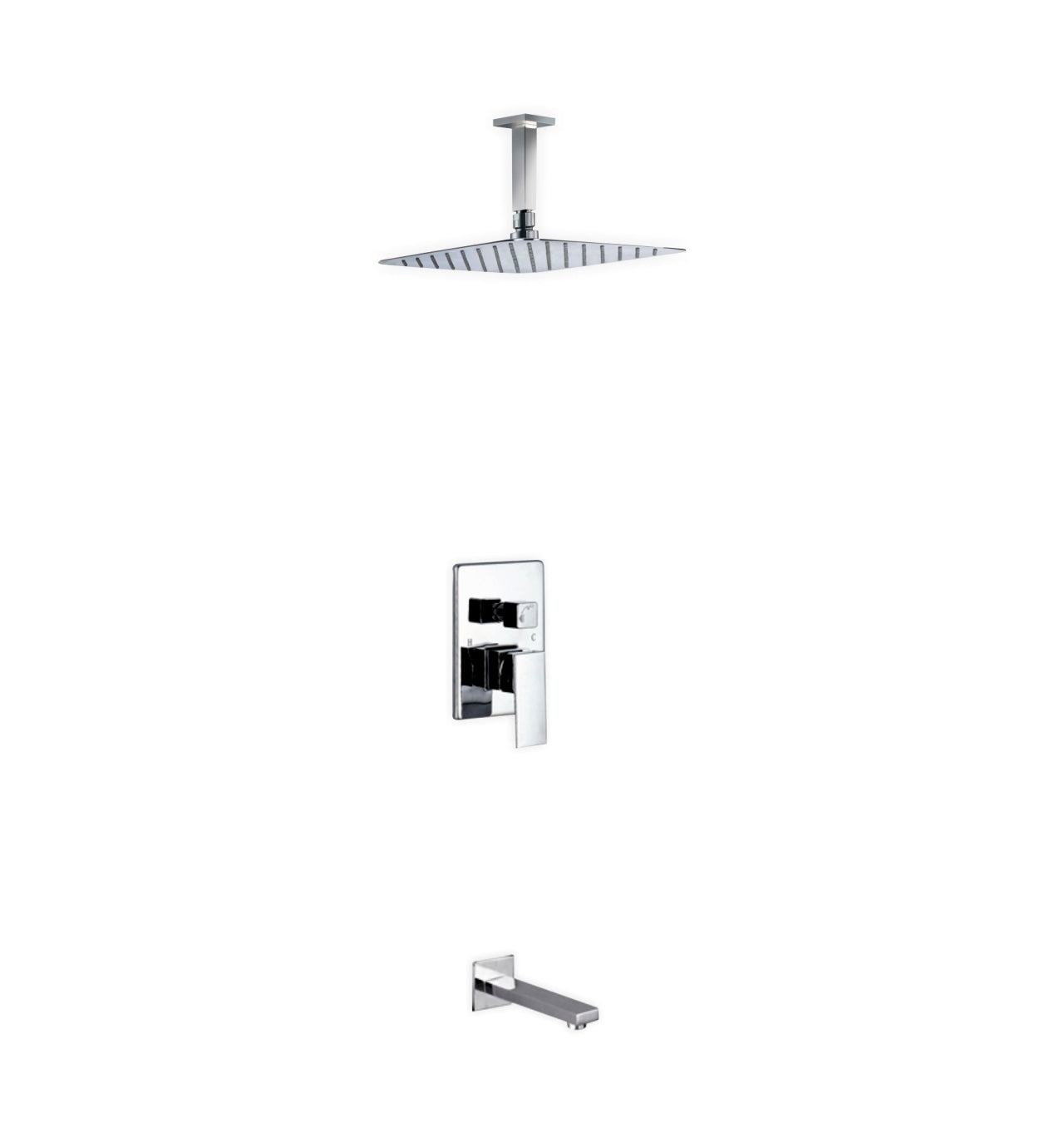 Aqua Piazza Shower Set w/ 12" Ceiling Mount Square Rain Shower and Tub Filler