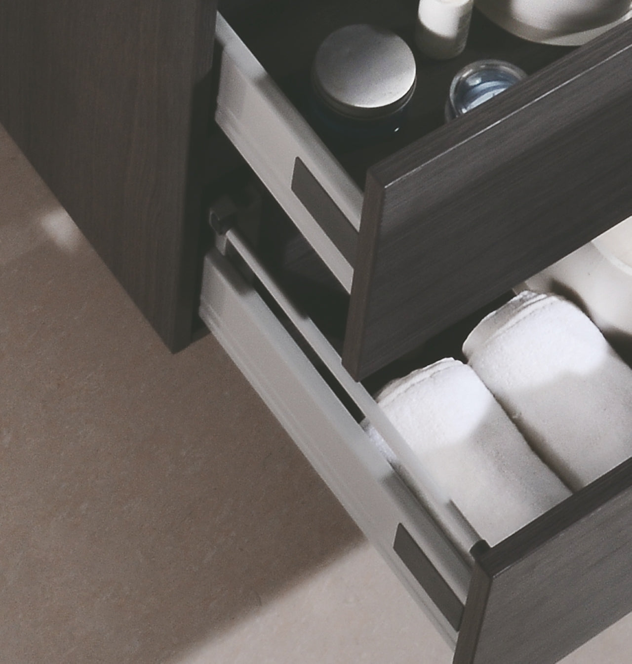 The Bliss is one of the most elegant modern Bathroom Vanities around. This 24 Inch model comes with a reinforced Acrylic sink, 5 layer Plywood Constructed Console with high quality European Hardware, that provides smooth soft-closing operation drawers.