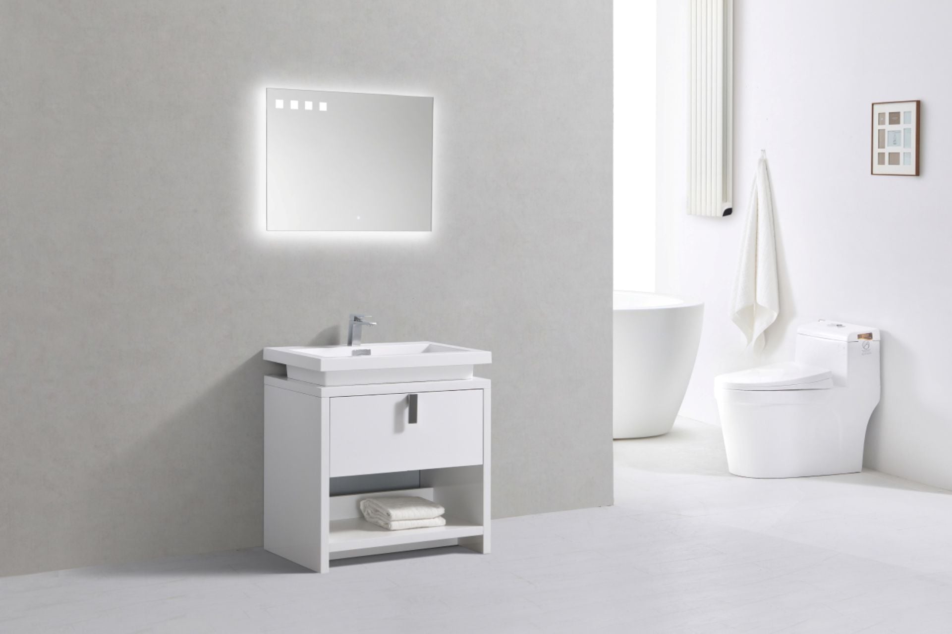 Levi 32" Gloss White Modern Bathroom Vanity w/ Cubby Hole